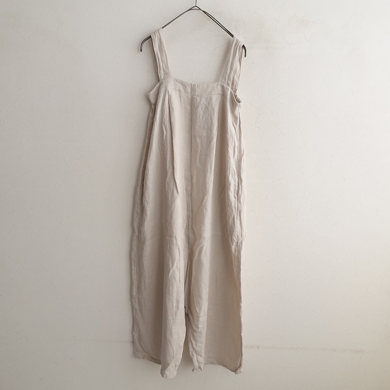 - エヴァムエヴァ evam eva *リネンサロペットパンツ*ボトムス麻ベージュオールインワンワイドサルエル(1-2412-246)【90A52】