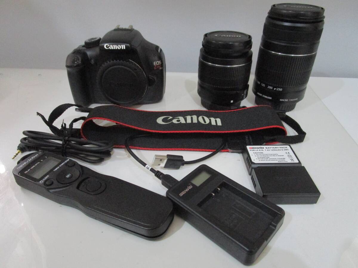 - 【送料無料】Canon デジタル一眼レフカメラ お得セット EOS Kiss X50 ダブルズームキット EF-S18-55mm/EF-S55-250mm付属 ブラック