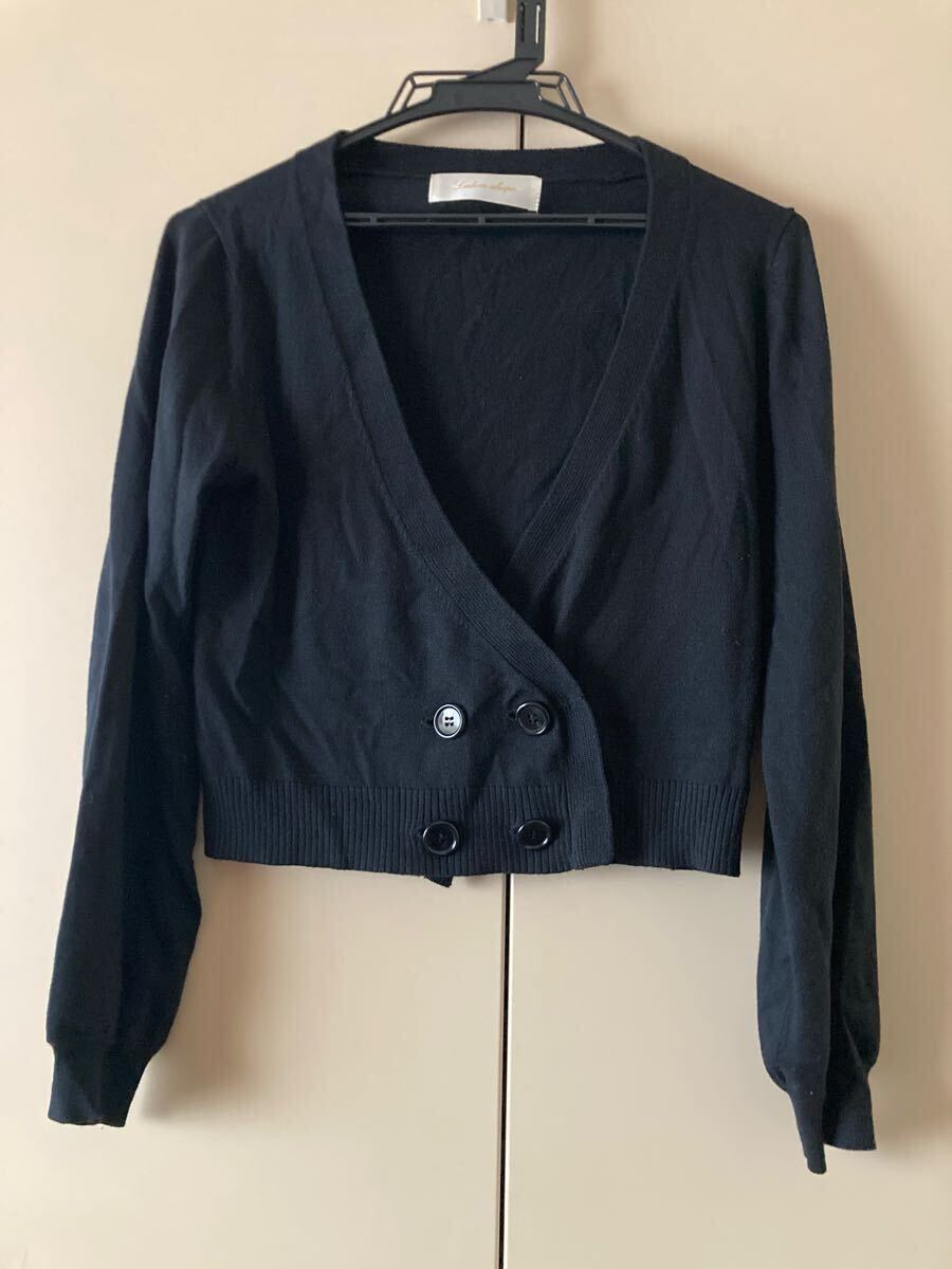 > ☆Ships 絹 カシミヤ カーディガン ブラック 黒 パフスリーブ バルーン袖 ショート丈 ladore ships ラドアシップス