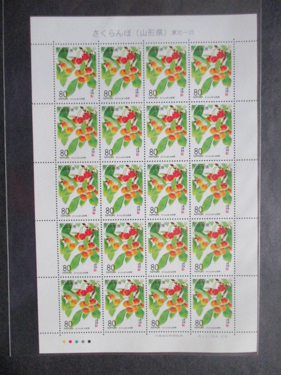 - 1-23 コレクター出品 ふるさと切手★シート さくらんぼ 山形県 発売日 1999.4.26