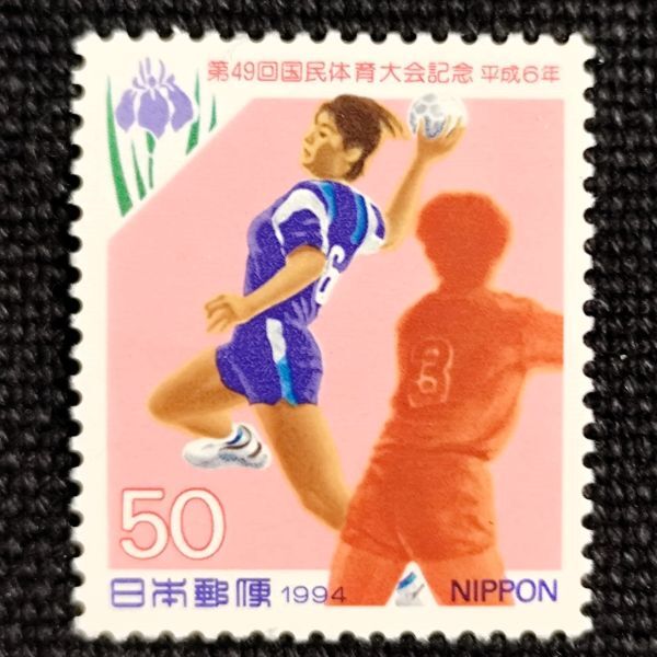 - [25011003]【国民体育大会 第49回】単片 国体「ハンドボールとカキツバタ」50円 1994年発行 美品