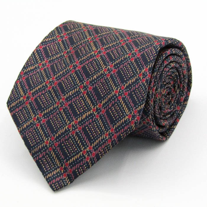 - ジムトンプソン ブランド ネクタイ チェック柄 ドット マルチカラー シルク タイ製 PO メンズ ネイビー JIM THOMPSON