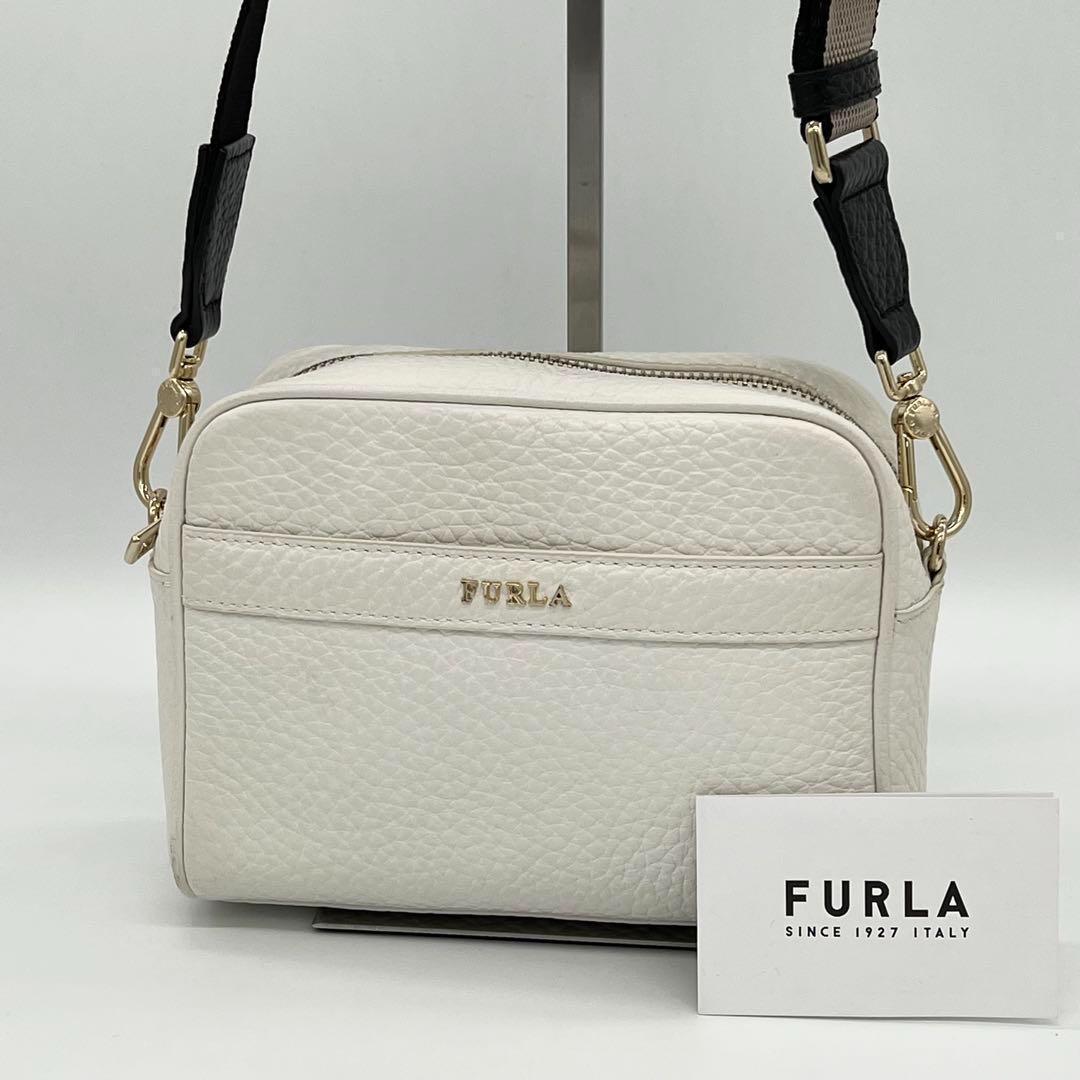 > 【美品】FURLA フルラ アヴリル ショルダーバッグ 斜めがけ シボ革 カメラバッグ クロスボディ ミニバッグ レディース アイボリー BI990412