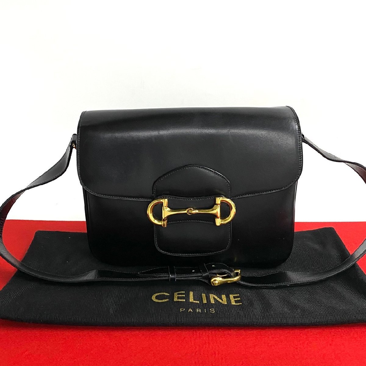 > 極 美品 袋付き CELINE セリーヌ ヴィンテージ ホースビット 金具 カーフ レザー 本革 ショルダーバッグ ポシェット ブラック f8008