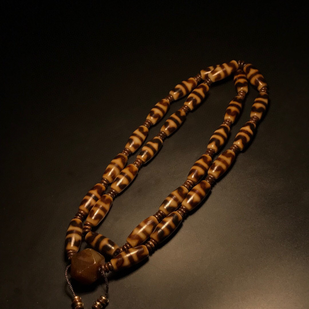 - 【超珍館蔵】瑪瑙製 細密彫 雙虎牙天珠念珠ネックレス 置物 古賞物 古美術品 稀少珍蔵品