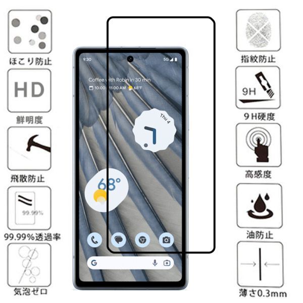 > 黒 Google Pixel 7A ガラス フィルム グーグル ピクセル セブン エー 液晶 保護 画面 スクリーン カバー シール シート Glass Film 9H