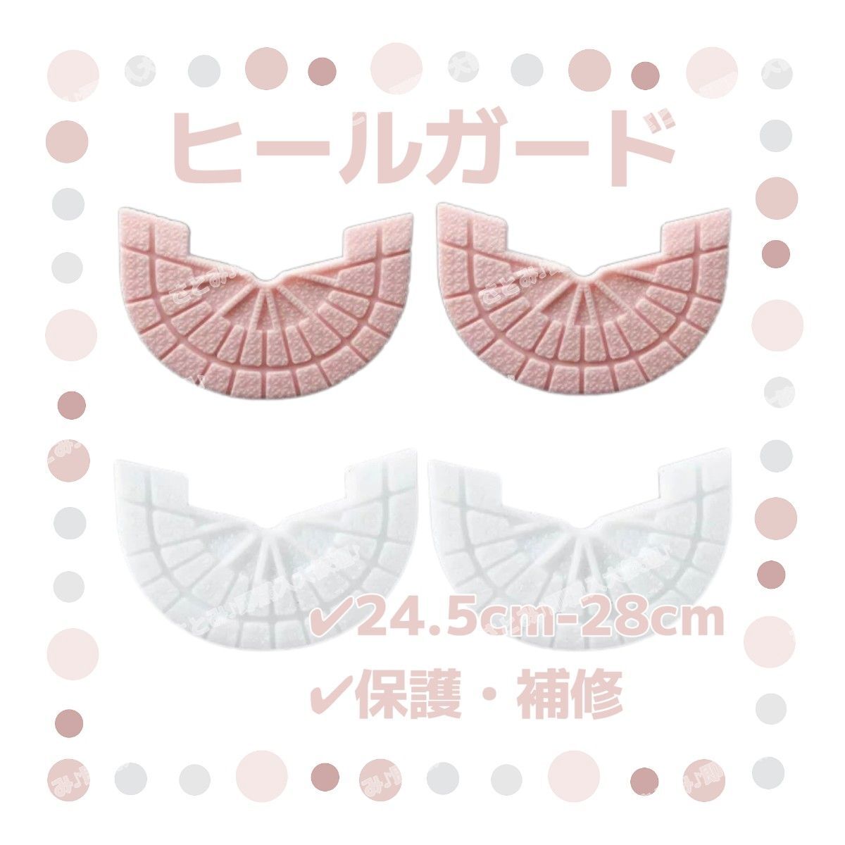 - ヒールガード 4枚セット 2足分 ソールガード スニーカー プロテクター 保護 補修 24.5cm-28cm ピンク ホワイト
