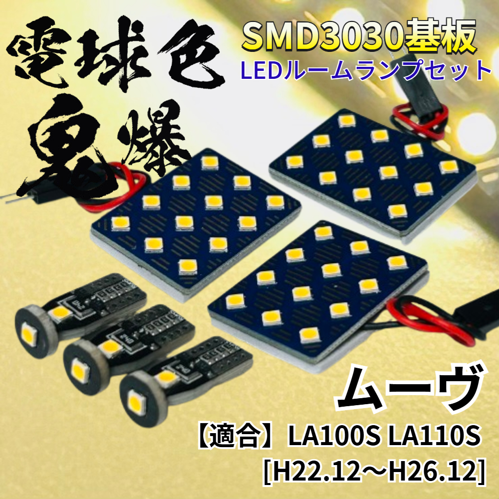 - 【電球色】ムーヴ (ムーブ) LA100S LA110S 暖色 鬼爆基板 3030SMD LED ルームランプ セット 車内灯 室内灯 パーツ アクセサリ ダイハツ