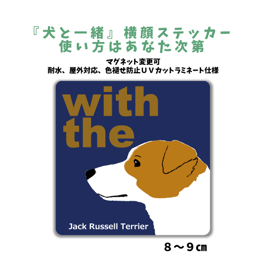 > ジャックラッセルテリア『犬と一緒』【玄関 車 ポスト】ステッカー 名入れマグネット変更可 屋外 防水 カスタマイズ