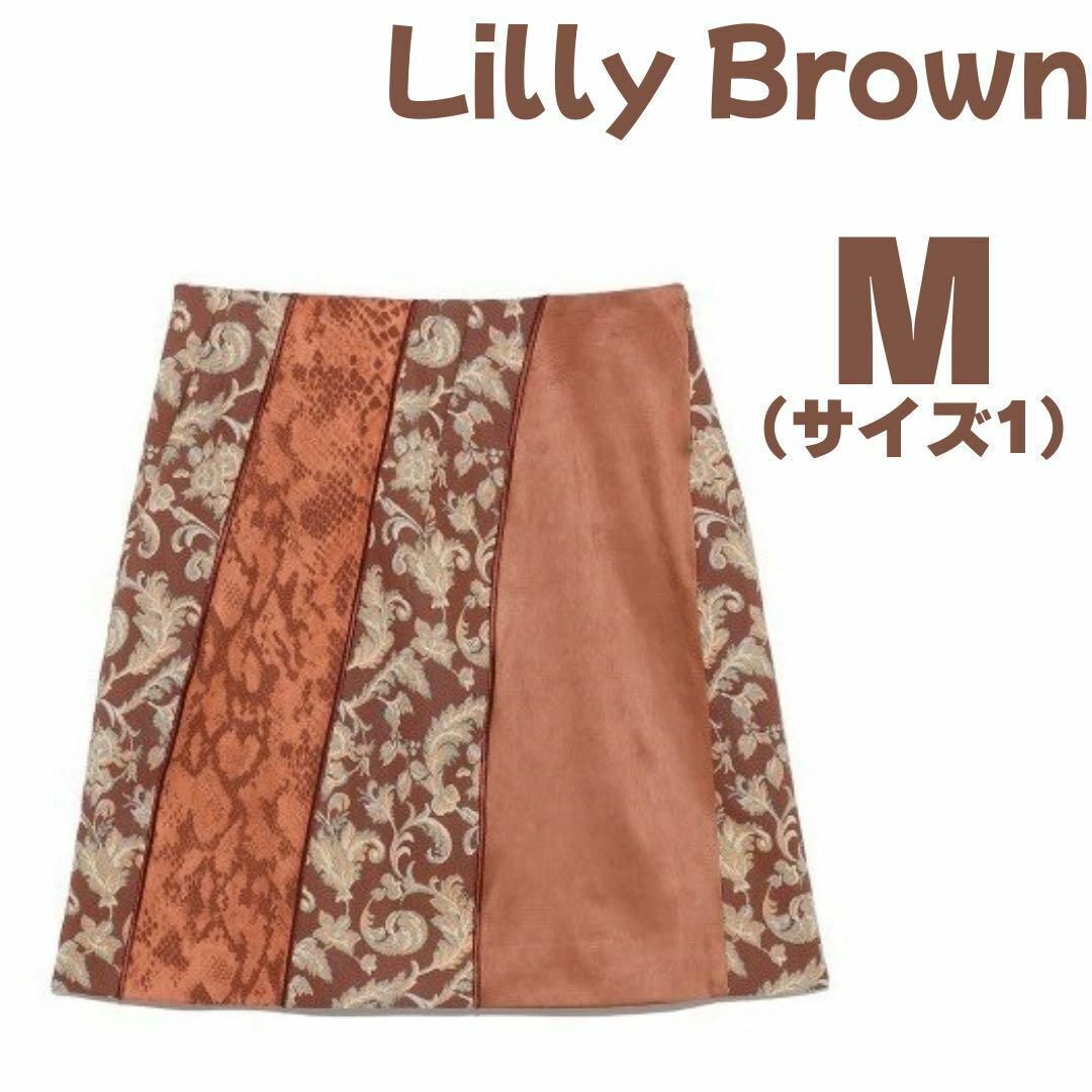 - Lilly Brown リリーブラウン カラーブロックスカート タイトスカート ミニスカート スウェード調 パネルデザイン 花柄 ジャガード 古着 M