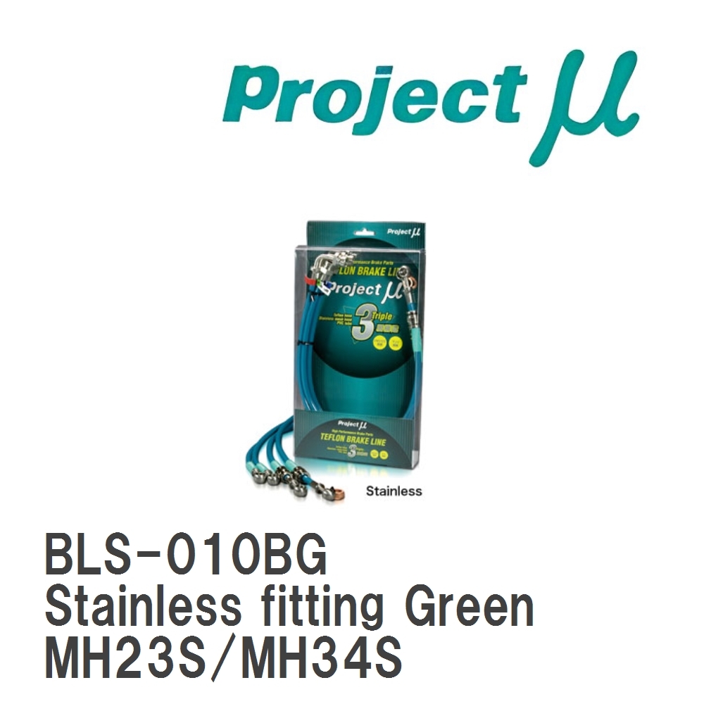 > 【Projectμ】 テフロンブレーキライン Stainless fitting Green スズキ ワゴンR MH23S/MH34S
