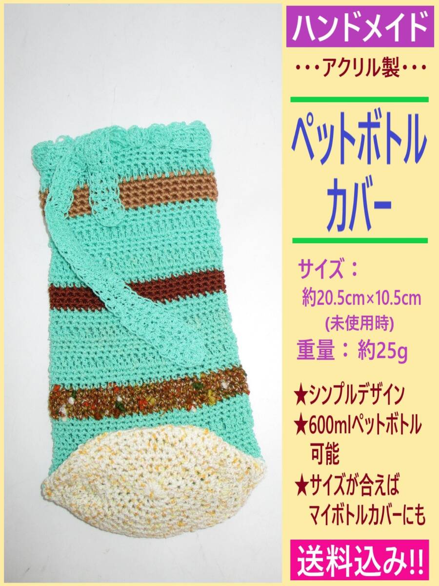 > ハンドメイド ペットボトル カバー 1点 E 手編み シンプル アクリル 目印 大きめ 600ml可能 ボトル ホルダー マイボトル 水筒 袋 ボーダー