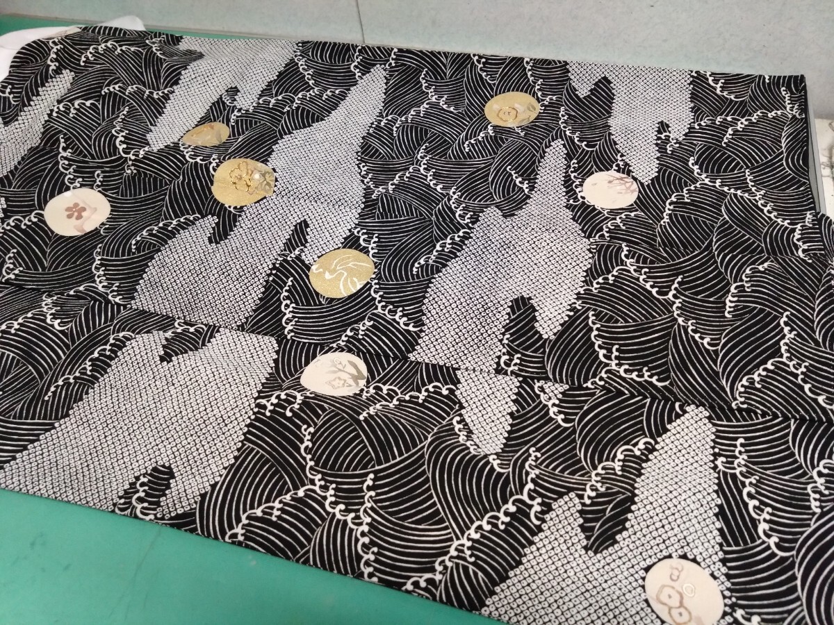 - ● 白 波 花 金駒 刺繍 作家物(あまり布紛失 作者不明) 高級 ちりめん 縮緬 芸術 美術 正絹 訪問着 着物 金彩 美品 ③
