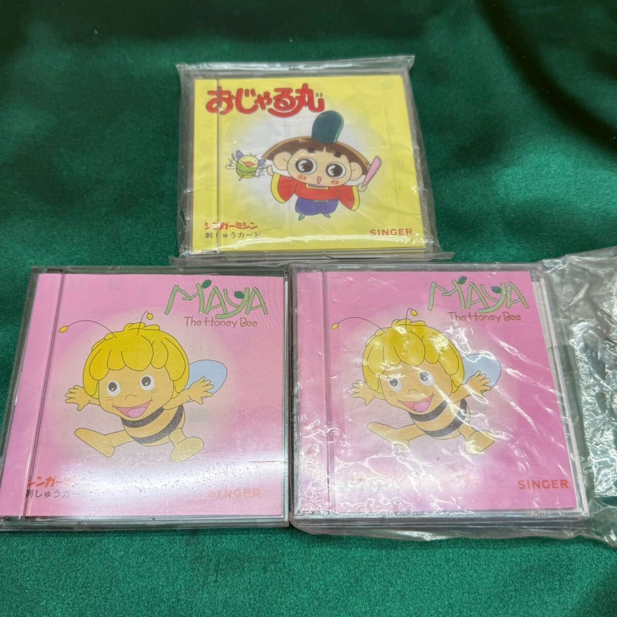 - 希少品! シンガー ミシン 刺繍カード 3枚 おじゃる丸 MAYA ミツバチ R7058