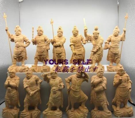 - 極上品 十二神将 総檜材 仏教工芸品 木彫仏像 精密細工 仏教手仕上げ品 薬師十二神将 一式
