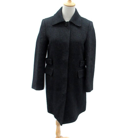 - ノーリーズ Nolley's ステンカラーコート ロング丈 ダイアゴナルストライプ柄 シルク ウール混 38 M 黒 ブラック グレー レディース