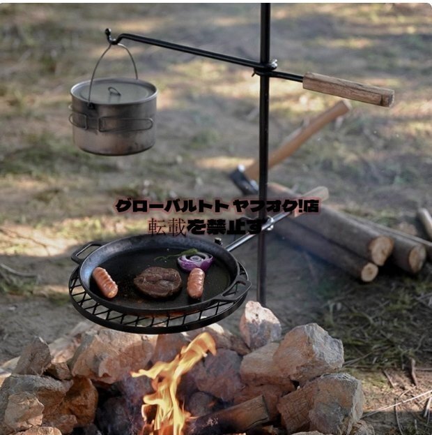 > ファイアスタンド ファイヤーラック 焼き網付き 焚き火台 鋳鉄製 打ち込み式 全長122cm 組み立て簡単 アウトドア用 多機能