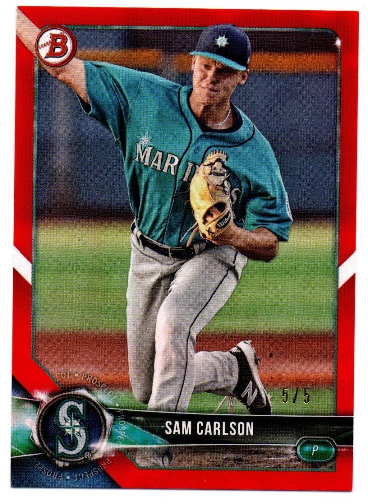 - 【SAM CARLSON(Seattle Mariners)】2018 BOWMAN Draft Red #BD175[5/5]