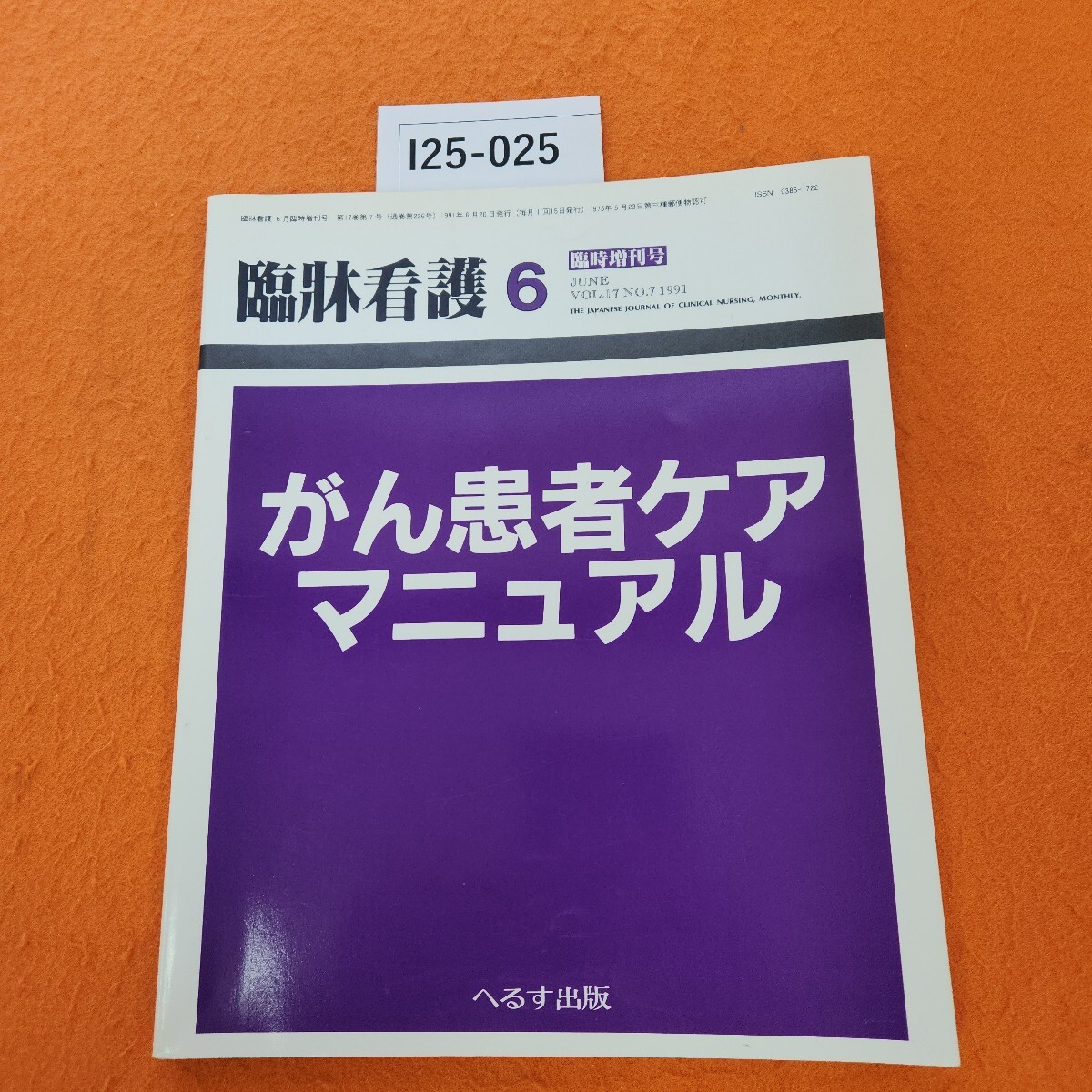 - I25-025 臨床看護 6 がん患者ケア・マニュアル 一九九一年六月臨時増刊号 第十七巻 第七号 へるす出版 個人印あり。