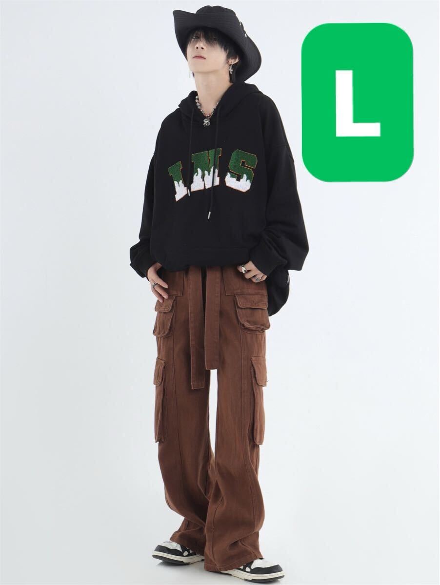 - デニム ワイドレッグ ジーンズ ワイドパンツ ワイドデニム ルーズパンツ ボトムス パンツ メンズ レディース ベルト付き ストリート 茶 L