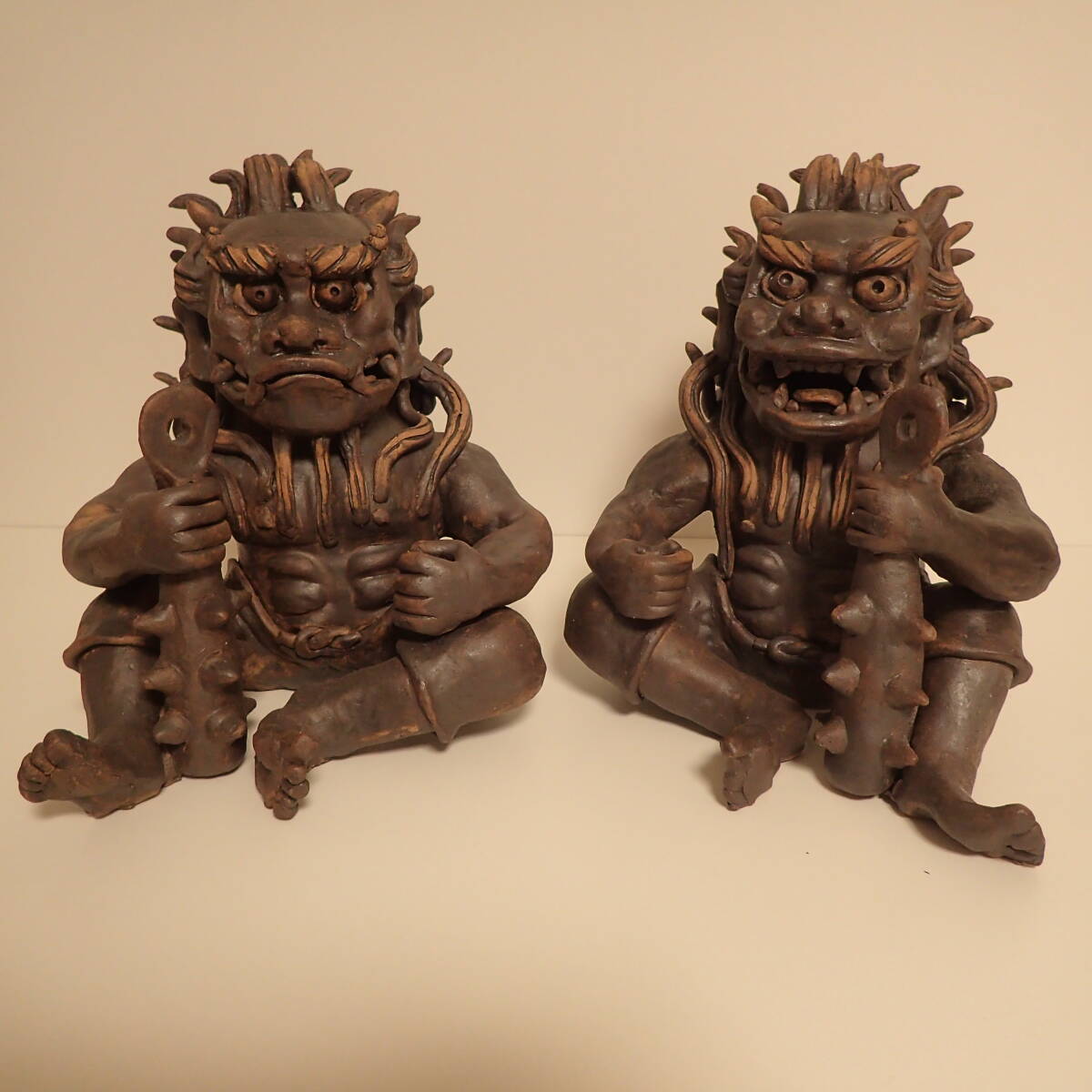 - 鬼形商會No.55*特価*<威風堂々> 厄除守護 陶器製 鬼置物陶人形 作家物 手捻り1点物 鬼瓦 魔除け 厄除け 風水 和風 新築祝 節分