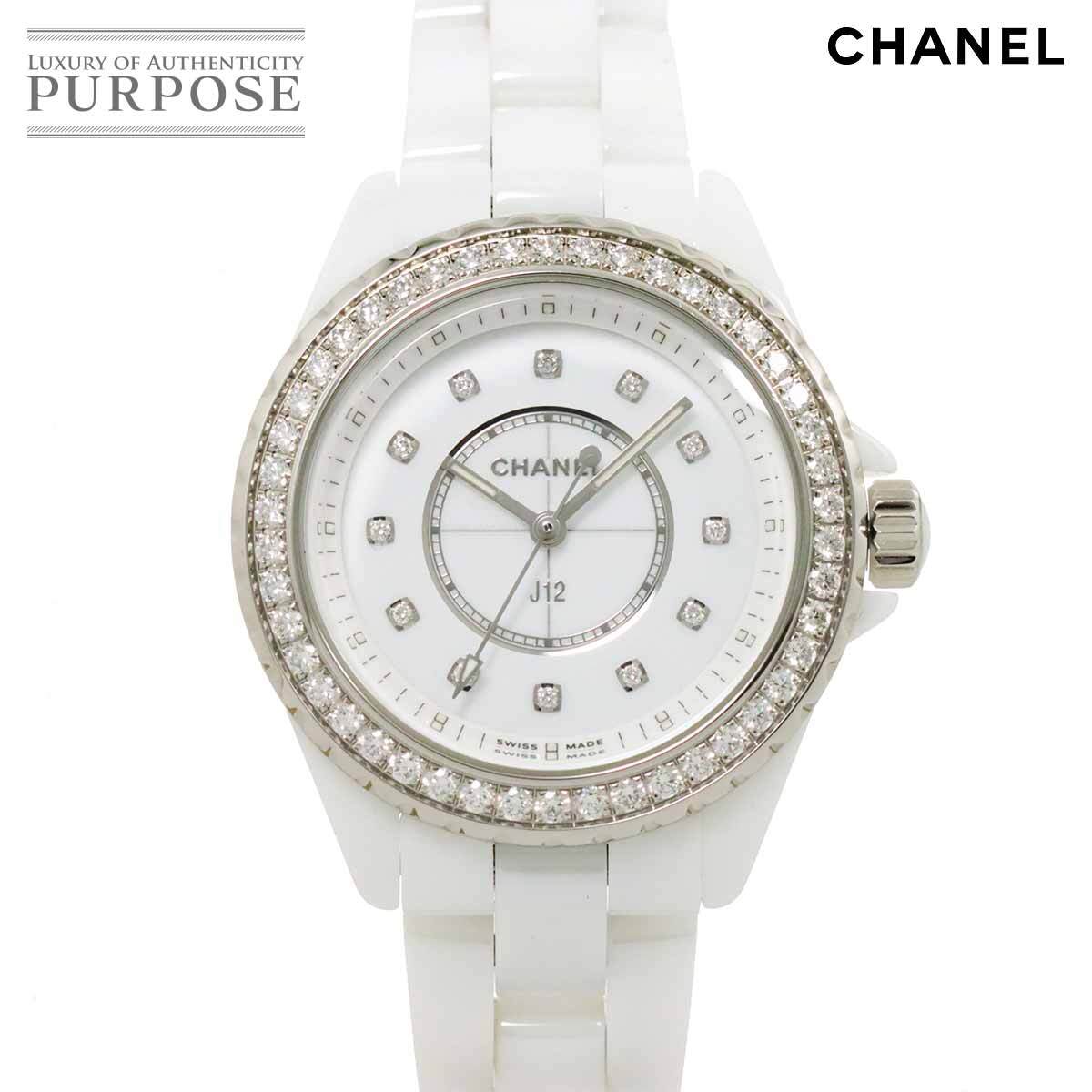 - シャネル CHANEL J12 33mm H6418 レディース 腕時計 12P ベゼル ダイヤ ホワイト セラミック クォーツ ウォッチ 90257692