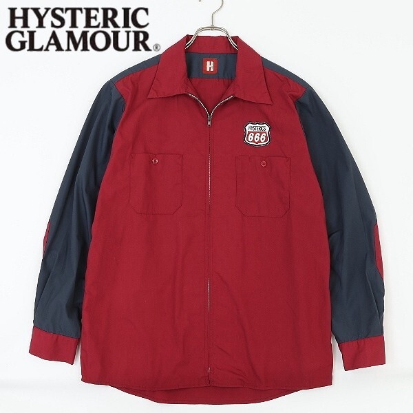 > 90's◆HYSTERIC GLAMOUR ヒステリックグラマー ロゴワッペン 切替 ジップ ジャケット レッド×チャコール FREE