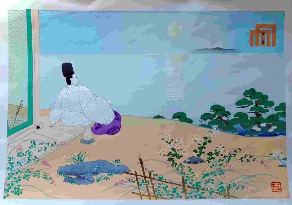 - f24121412〇彩色木版画1枚 源氏物語五十四帖 須磨 山田書院 昭和時代〇和本古書古文書