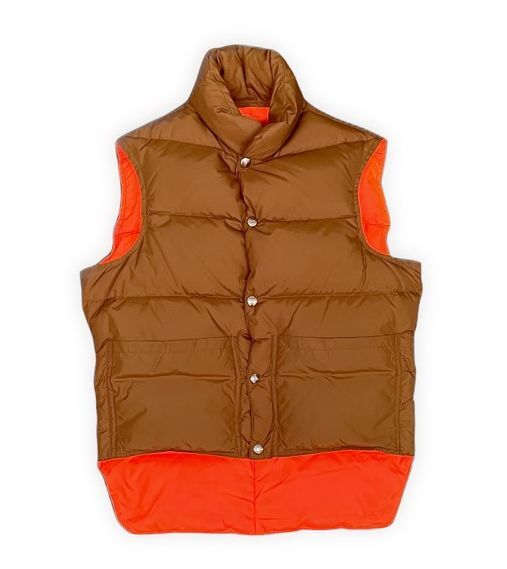 > 60's ガチョウタグ 米国製 ビンテージダウン COMFY コムフィ コンフィ ダウンベスト リバーシブル ブラウン オレンジ S [la-1161]