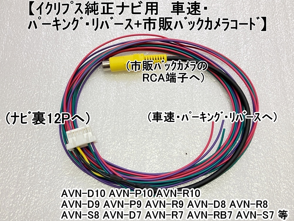 > ECLIPSEイクリプス12P 車速/リバース/パーキング+市販バックカメラハーネス AVN-S8 AVN-D8 AVN-R8 AVN-S7 AVN-D7 AVN-R7