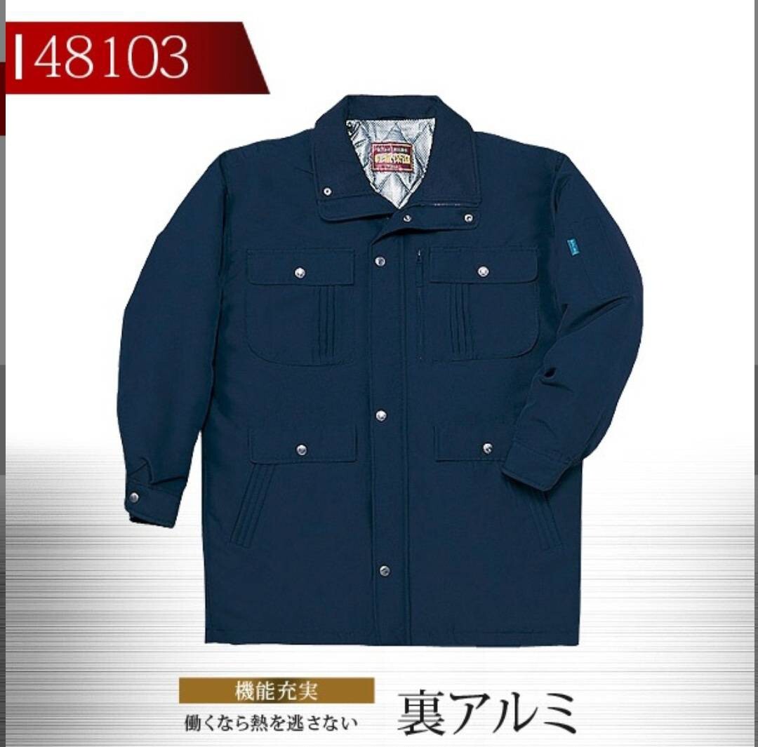 > 2755 自重堂48103耐久撥水防水防寒コート/ネービーELサイズ 新品 (秋冬作業着ジャンパー作業服ジャンバー裏アルミ軽量保温ウイングアーム