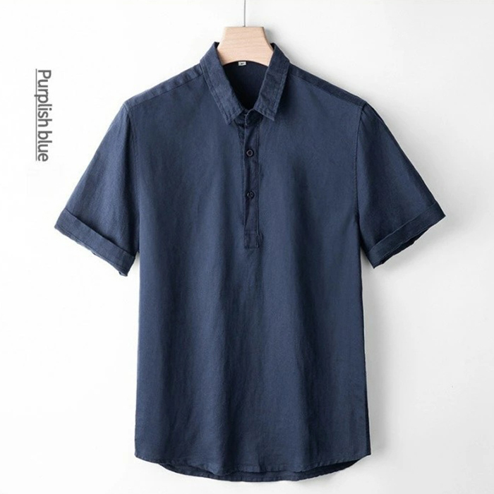 - シャツ リネンシャツ 半袖シャツ メンズ ポロシャツ プルオーバーシャツ 亜麻100% トップス Zwc1760 L ネイビー