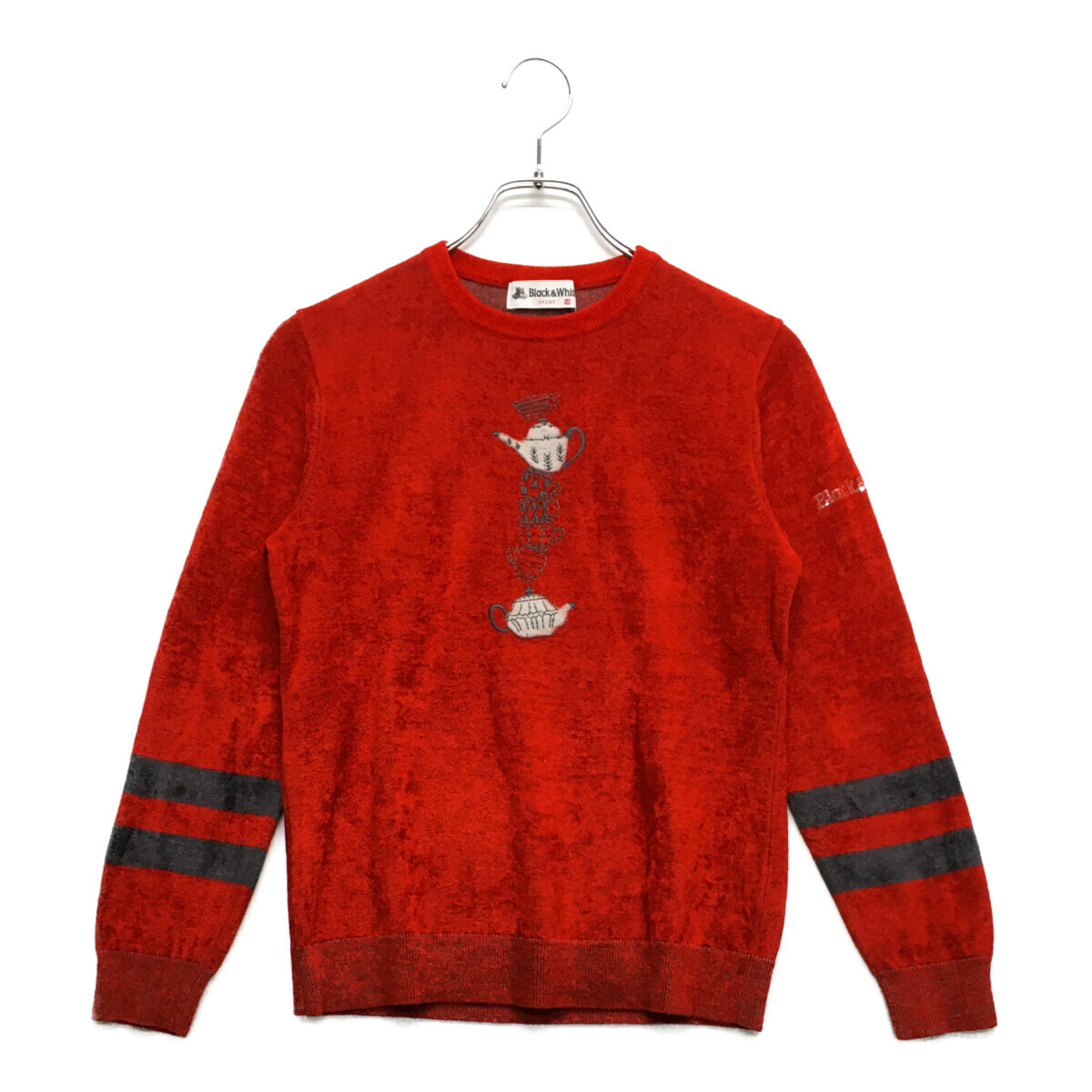 > coco 中古【値下げ】ブラック&ホワイト レディース セーター M 赤 長袖クルーネックニット ベロア調 レターパックプラス発送可 97464
