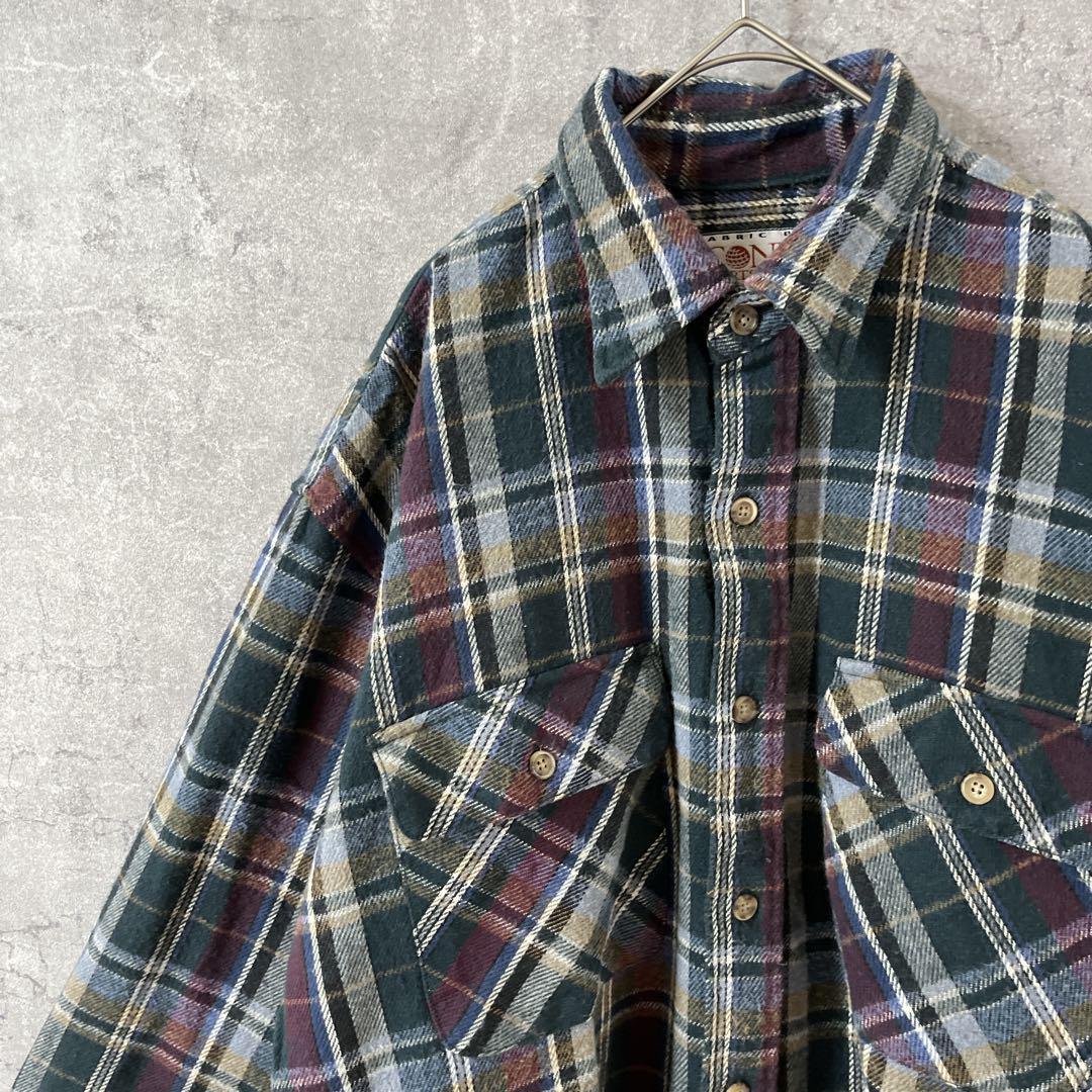 - チェックシャツ 長袖 ネルシャツ USAコットン Lメンズ 緑系 T2