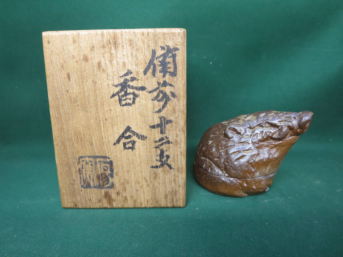 - 送料無料 備前焼 香合 猪 干支 送料無料