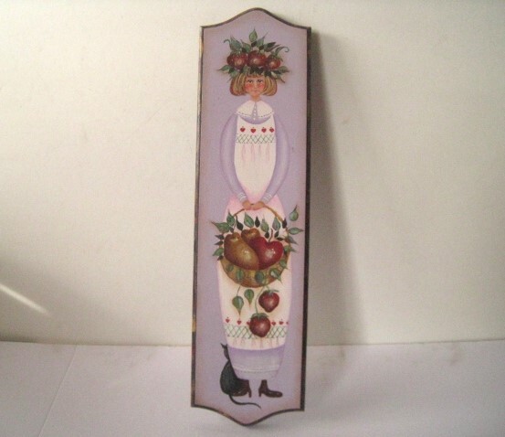 - トールペイント 壁掛け 女の子 完成品 木製 サイズ:W14×H51.5×厚2㎝/24N12.19-37