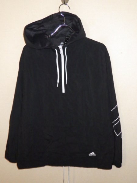 - z7337adidas★アディダス★プルオーバー★プリント×刺繍ナイロンパーカー★黒色★レア★激安
