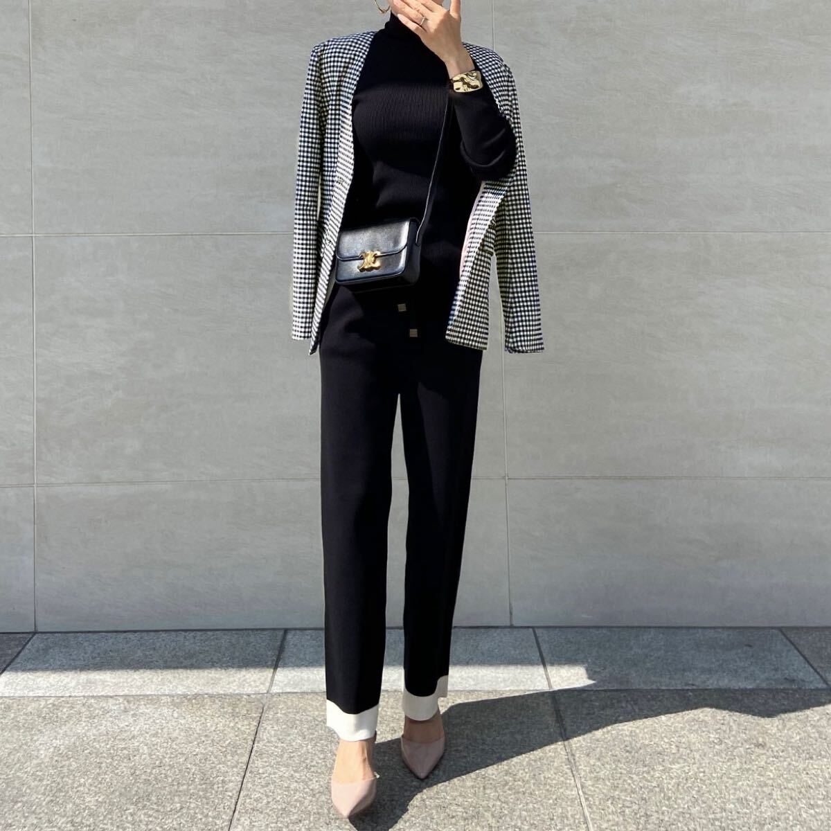 - JENNEギンガムチェックノーカラージャケットジェンヌセレモニー入学式卒業式スプリングジャケット参観日ピンク