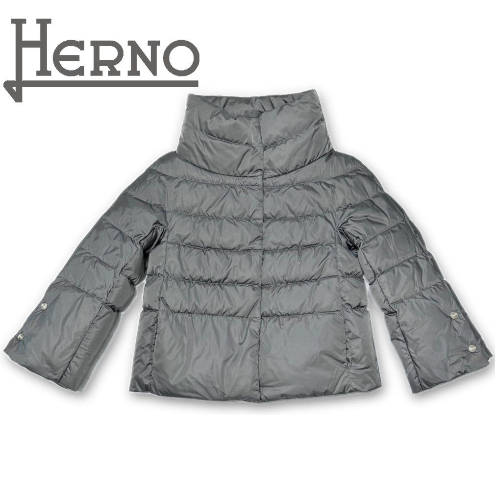 - 新品ヘルノHERNOハイカラー袖ボタン ダウンジャケット グレー #38★