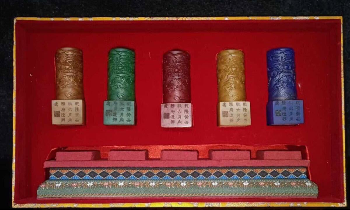 > 【伝世蔵品】中国 古美術 唐物 珍蔵版 乾隆年内務府製五色盤龍印鑑 書道具 篆刻 印材 中国美術 古印材 文房具 印章 寿山石 大珍品印材 印章