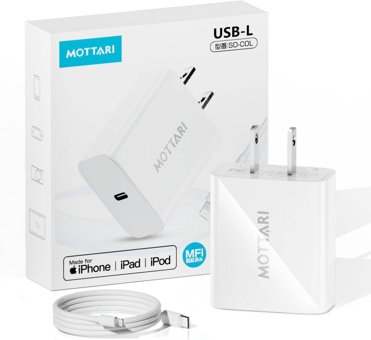 > 【新登場 & MFi/PSE認証済み】 iPhone 充電器 20W PD 急速充電 1.5m USB C - Lightning ケーブル付属 ACアダプター PD充電器