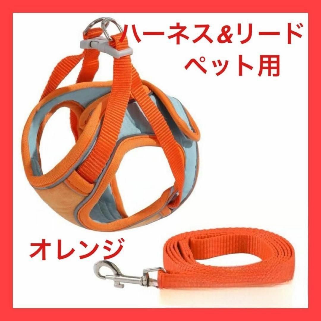 - 【オレンジ×ブルー】【M】ペット用 ハーネス&リード 散歩犬 猫 小動物 災害時