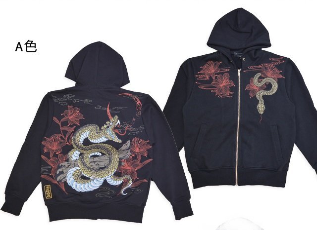 - 粋 古の大蛇スウェットジップパーカー◆絡繰魂 A色 XXLサイズ 251011 和柄 和風 刺繍 ヘビ からくり
