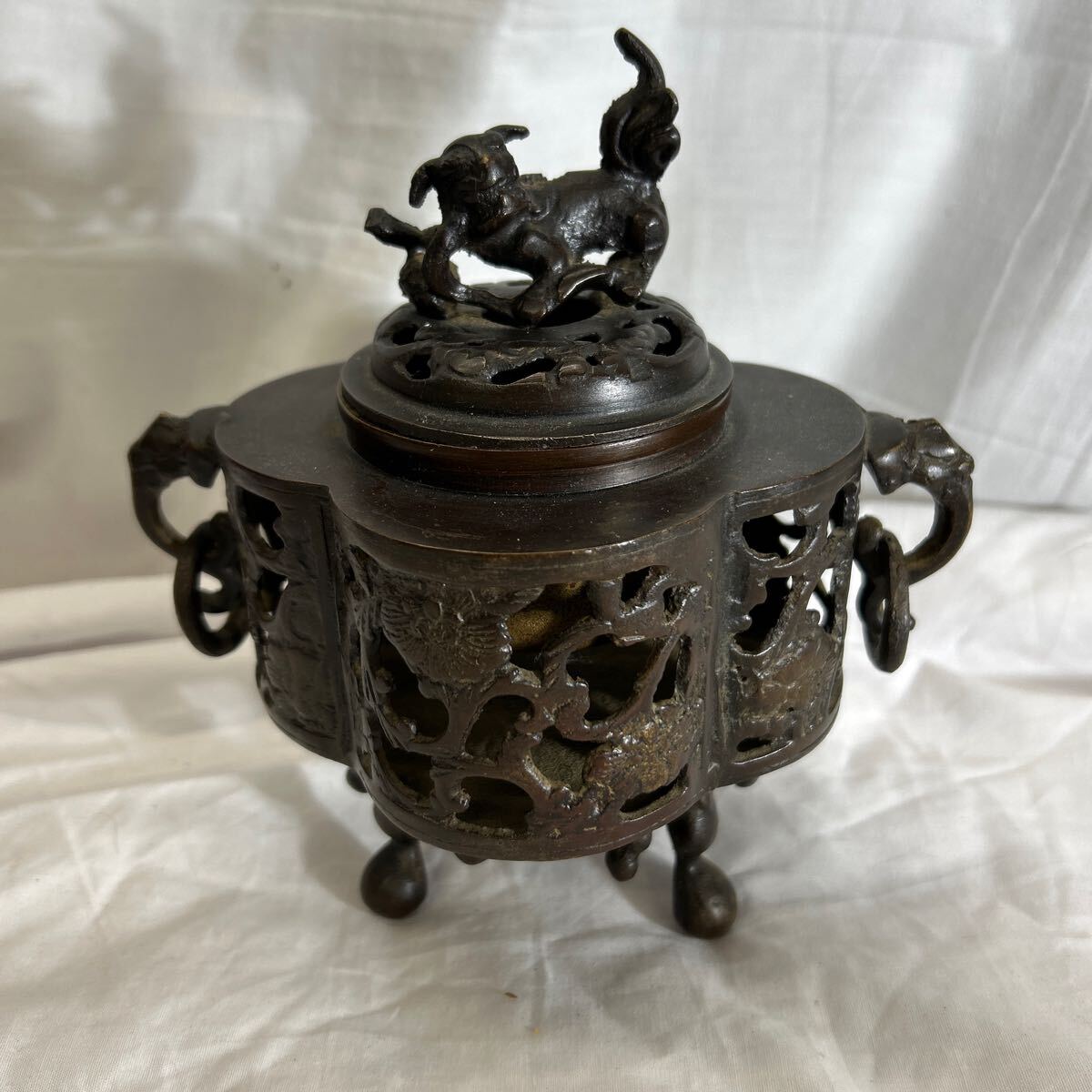 > 79★70125-⑧ 大明宣徳年製 香炉 獅子 香道具 三足 お香 キズ 汚れ あります