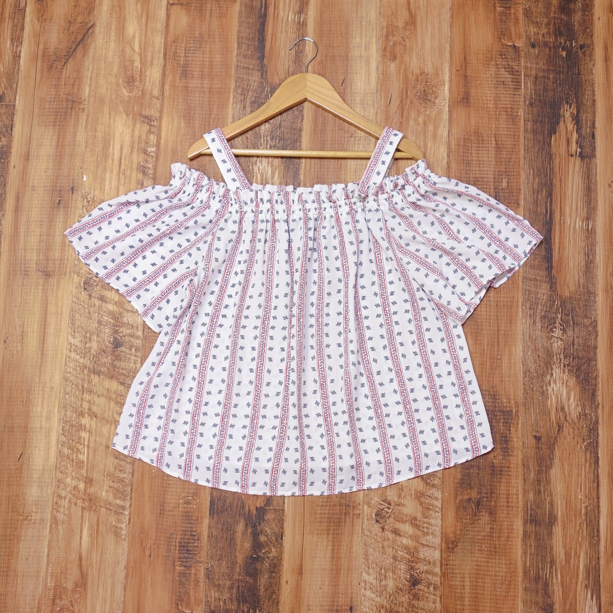 - イング INGNI ブラウス レディース オフショルダー チュニック ショート Mサイズ 古着 白 JY34