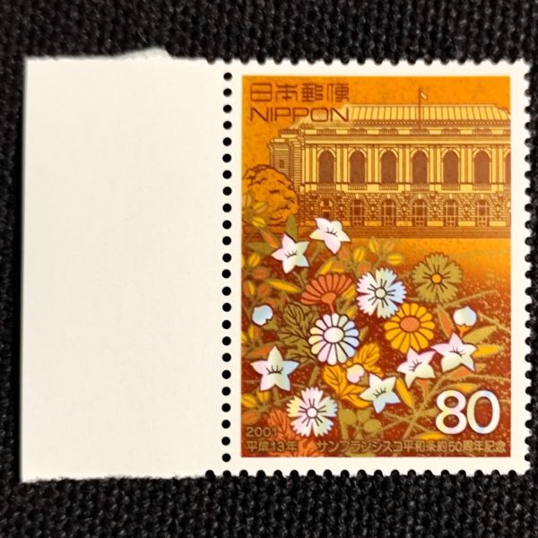 - [25012603]【サンフランシスコ平和条約50周年記念】単片 耳紙付「オペラハウスと秋草」80円 2001年発行 美品