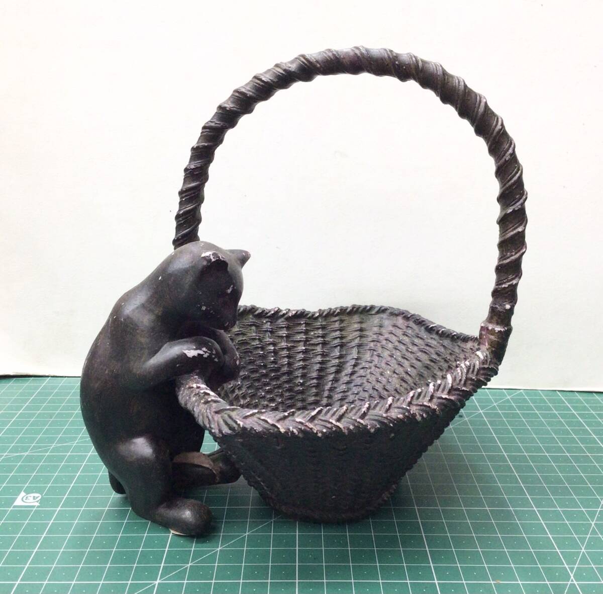 - アンティーク HARMONIER(ハルモニア) バスケットをのぞく猫 小物入れ 置物 約20cm 猫雑貨・猫グッズ ねこ ネコ●H4526