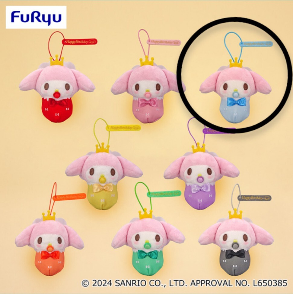 > 新品 非売品 マイメロディ バースデー おくるみ マスコット 2024 マイメロ ブルー 青 水色 ぬいぐるみ キーホルダー チャーム 景品