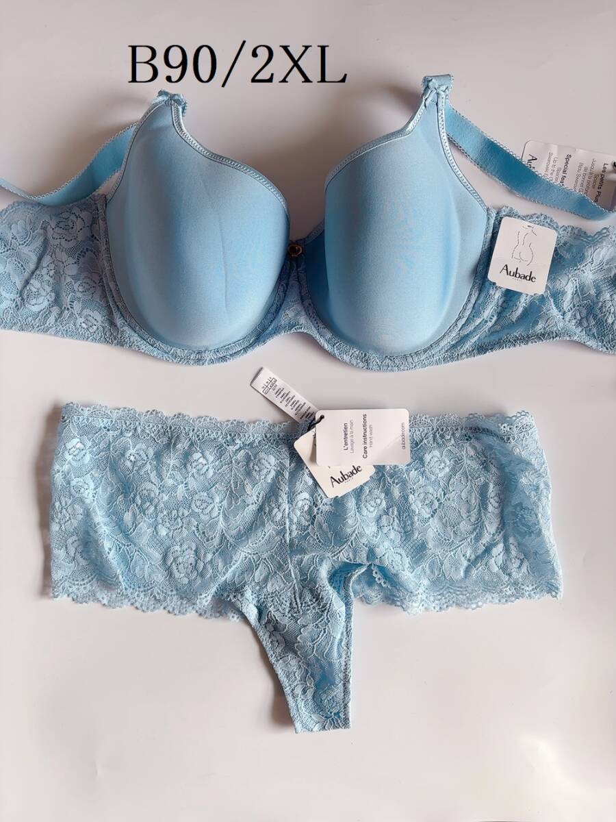 > B90+2XL☆Aubade オーバドゥ Rosessence 高級海外ランジェリーセット 水色