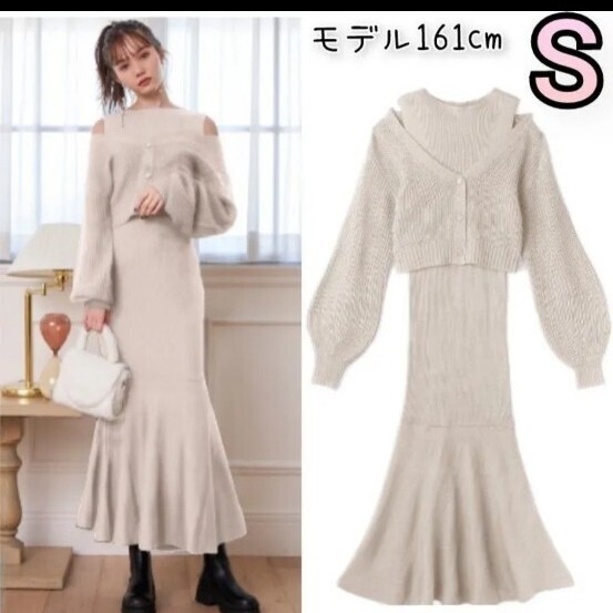 > S 前後2WayカーディガンXマーメイドワンピースニットセット ロング ニットワンピ アイボリー GRL ベージュ ホワイト